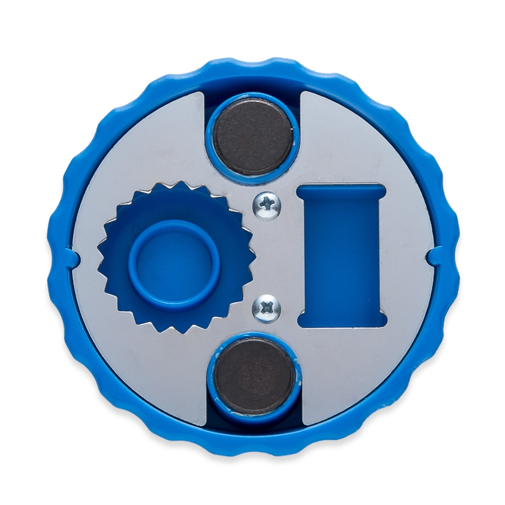 Abridor formato tampa de garrafa com imã para geladeira, possui área demarcada na parte superior. Contém dois tipos de abridores de garrafa. OBS.: PEDIDOS APENAS MÚLTIPLOS DE 50 PEÇAS!