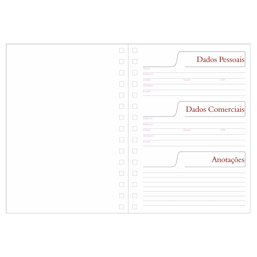 Agenda permanente wire-o com capa MDF ultra brilho sublimática de 3mm. Contém ?bolso? plástico atrás da capa, dados pessoais, contatos, mapa do Brasil, mapa mundi e anotações. Sugestão para sublimação do fornecedor: temperatura 200ºC, tempo 30/40 segundos, pressão baixa ? é recomendado tirar a umidade do verso do mdf na prensa por 30 segundos antes de realizar a personalização. Obs.: As capas podem apresentar algumas marcas de queimada na parte interna por serem recortadas em máquina de corte a laser.