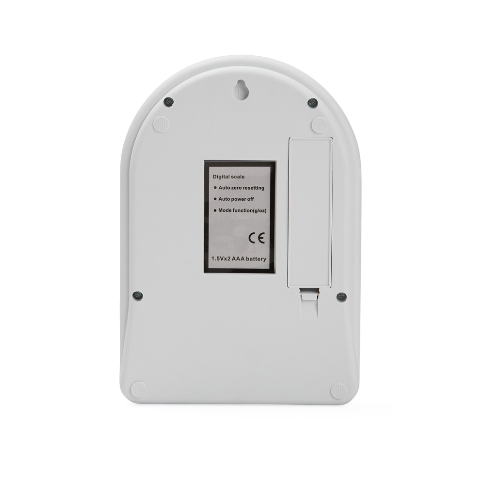 Balança digital plástica para cozinha com capacidade até 10kg. Unidade de medidas em gramas, onça (oz) e modo de pesagem tara. Funcionamento através de 2 pilhas AAA – acompanham pilhas teste.
