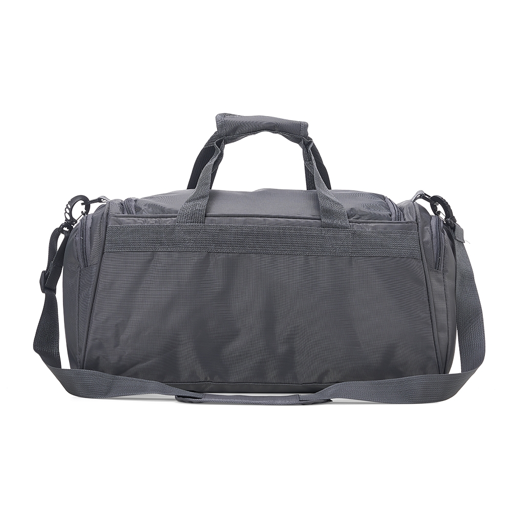Bolsa de viagem de 28 litros em poliéster oxford resistente à água com quatro compartimentos. Contém alça de mãos com suporte de juntura, bases antiderrapantes e acompanha alça transversal com suporte de apoio para ombro.
