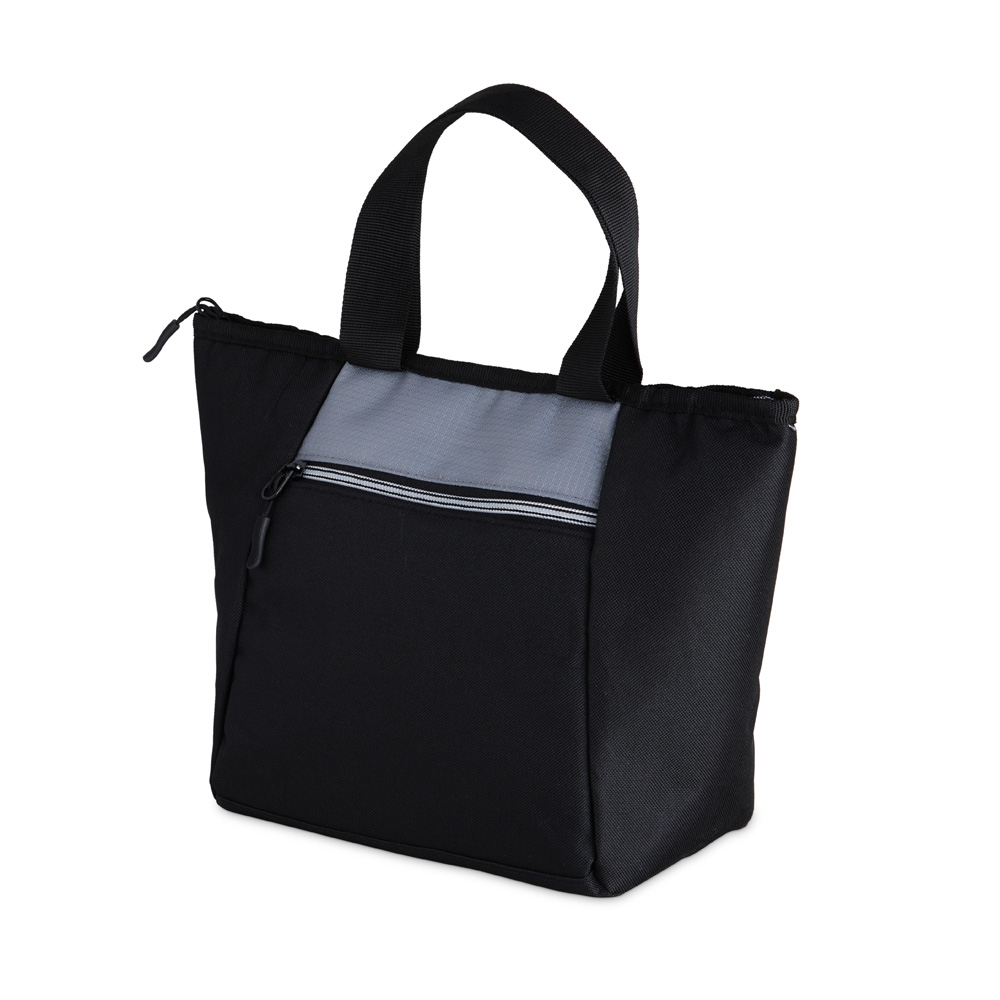 Bolsa térmica com capacidade de 7 litros com bolso frontal e alças de mãos.