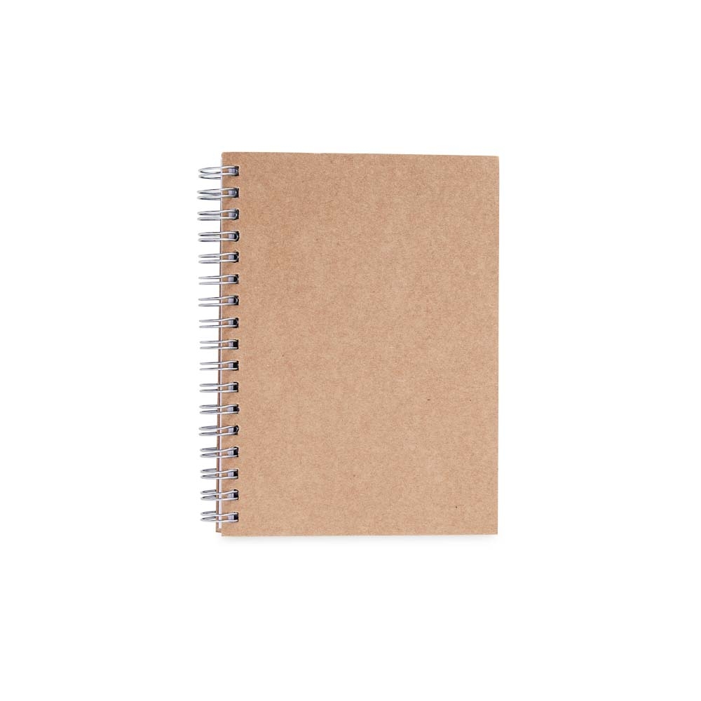 Caderneta ecológica com wire-o. Contém aproximadamente 80 páginas pautadas na cor branca.