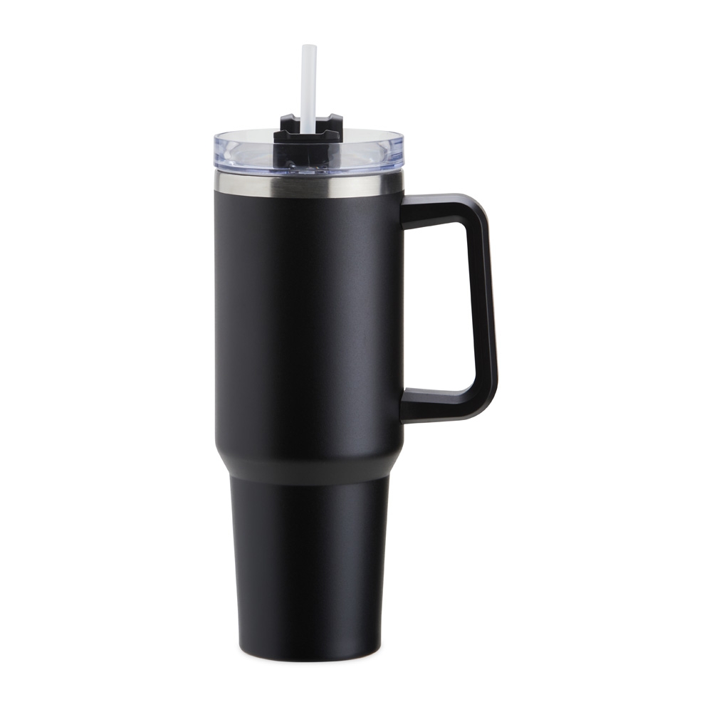 Caneca térmica com capacidade de 1,2 litros feita em inox 304 com parede dupla, contém tampa acrílica rosqueável com acesso para canudo e pegador plástico. Acompanha canudo plástico.