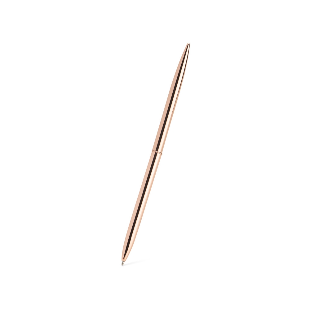 Caneta metálica com acionamento por rotação e carga esferográfica azul 1mm.