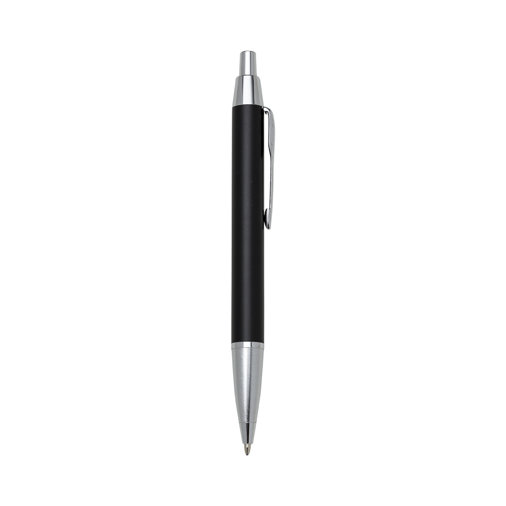 Caneta metálica com carga esferográfica azul e acionamento por clique. OBS.: PEDIDO APENAS MÚLTIPLO DE 50 PEÇAS!