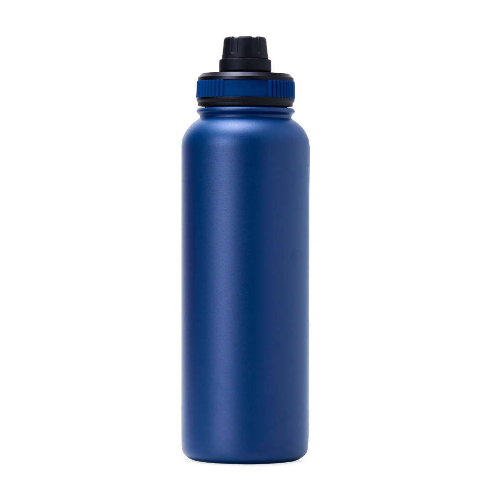 Garrafa térmica feita em inox com parede dupla livre de BPA, capacidade de 1,2 litros. Tampa com alça para transporte e tampa de proteção para o bocal.