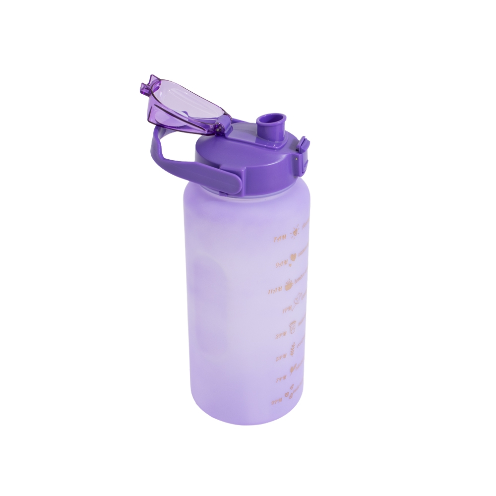 Kit com 3 garrafas plásticas, sendo um squeeze galão com capacidade de 2 litros, squeeze 750ml e garrafa 300ml. Squeeze 2L com alça para transporte e suporte para celular, botão de acionamento e tampa de proteção para o bocal squeeze 750ml com botão de acionamento, trava de segurança e tampa protetora para o bico de silicone garrafa 300ml com tampa de alumínio e alça de nylon para transporte. Acompanham dois canudos e acessórios de extensão de canudo.