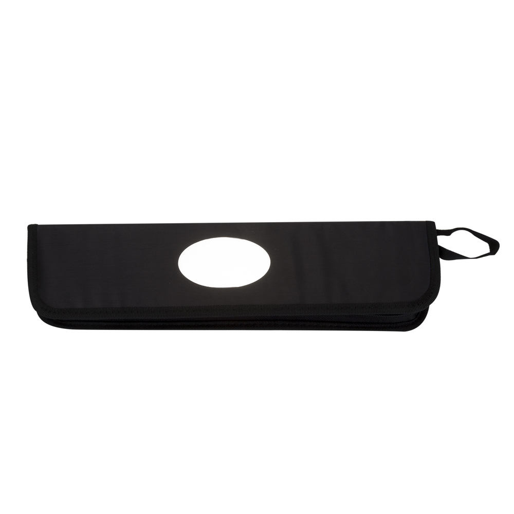 Kit churrasco 3 peças em estojo de nylon com alça. Possui: faca(acompanha proteção plástica), garfo(acompanha proteção plástica), pegador em inox e parte interna com velcro para guardar as peças. Acompanha plaqueta para gravação.