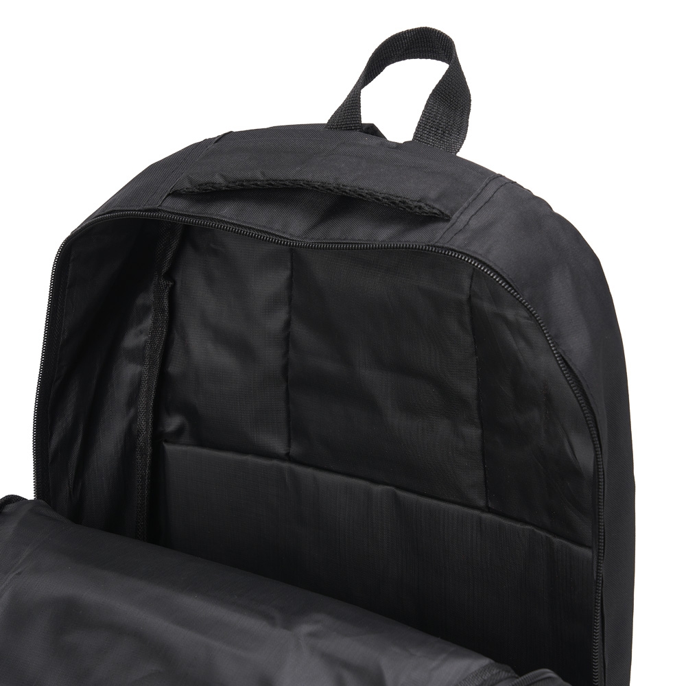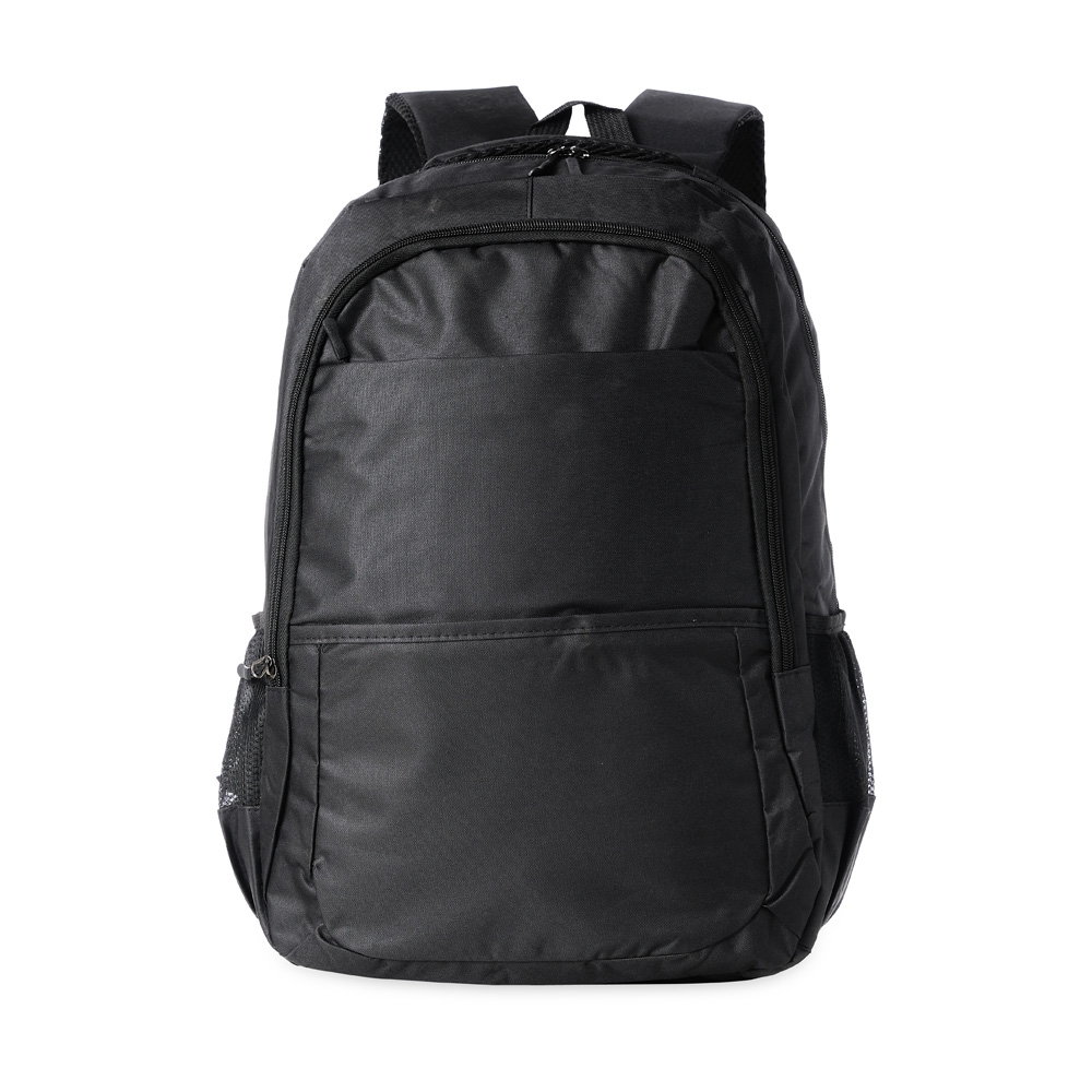 Mochila de nylon 27 litros com quatro compartimentos, sendo o principal com bolso para notebook 17,3. Com bolsos laterais telados, a mochila possui duas alças de mãos e alças para as costas com revestimento espumado.