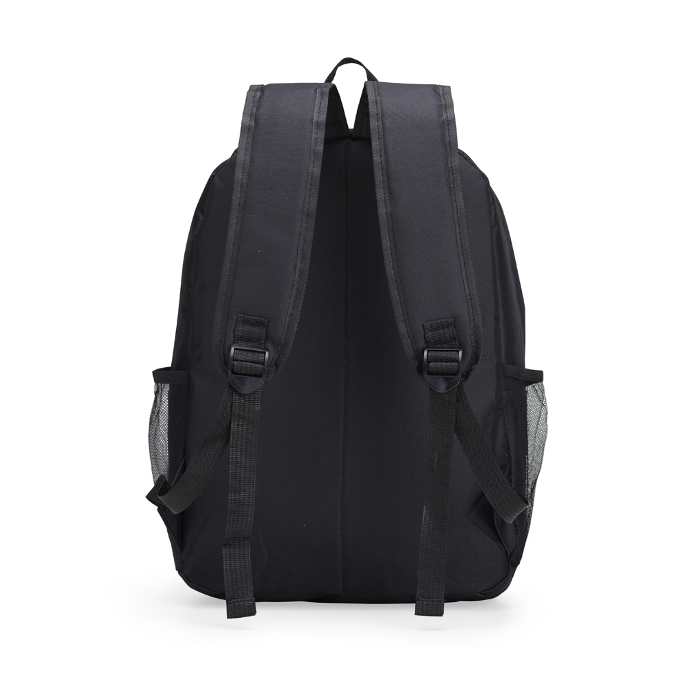 Mochila de Nylon 20 litros com dois compartimentos, sendo principal com bolso raso para notebook 15.6. Contém bolsos laterais telados.
