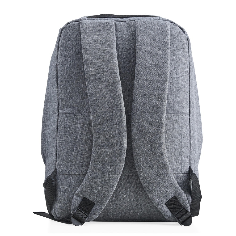 Mochila confeccionada em poliéster com compartimento para notebook até 15,6 polegadas. Contém uma divisória com bloqueador RFID e alça para encaixe em malas de viagem.