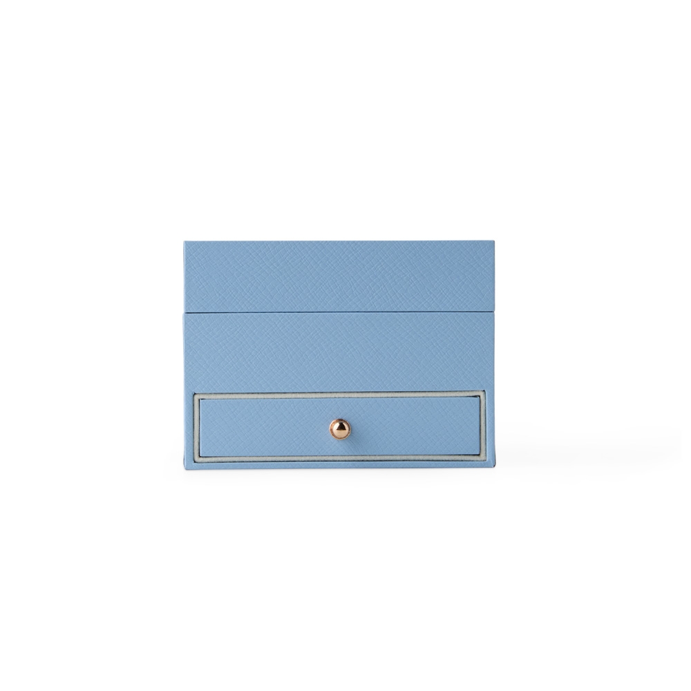 Porta joias de couro sintético com revestimento aveludado. Possui gaveta e compartimentos internos para anéis, brincos, pulseiras e colares.