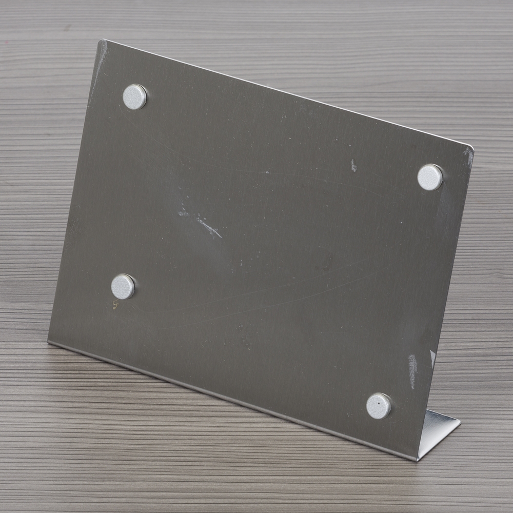 Porta retrato 10 x 15 em inox escovado, modelo chapa metálica acompanha quatro ?botões? imã e película protetora anti-risco.