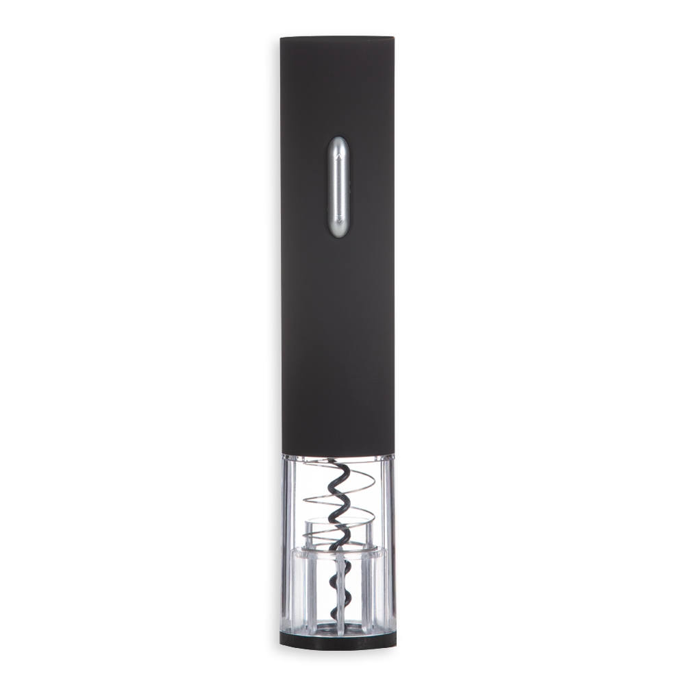 Saca-rolhas elétrico com suporte cortador de lacre, contém compartimento com tampa para inclusão de 4 pilhas AA (não acompanha). O suporte cortador de lacre também pode ser utilizado como base de sustentação.